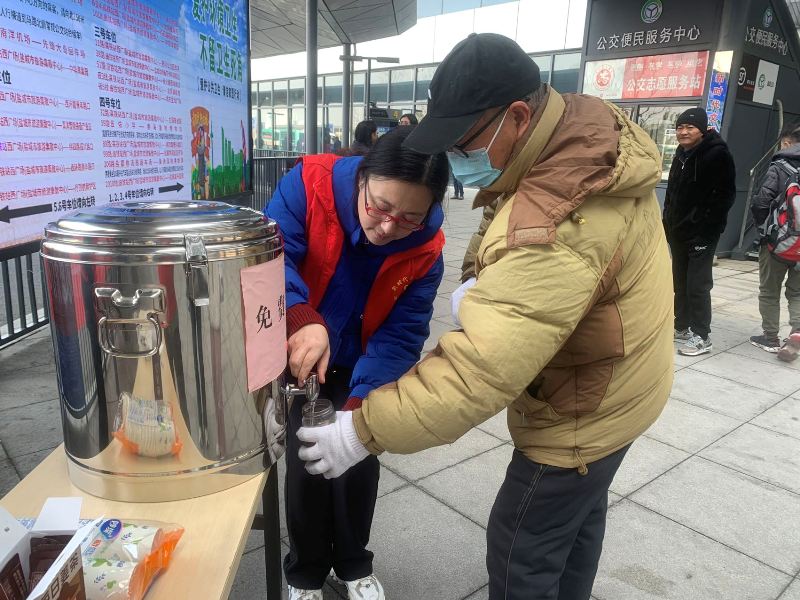 志愿者们不畏严寒纷纷加入到志愿服务活动中,他们的无私奉献和辛勤努力,让旅客们感受到了家的温暖和社会的关爱。此外,志愿者们还为旅客提供了一系列细致入微的服务,如为乘客免费提供红糖姜茶等。这些看似微不足道的举动,却给旅客带来了极大的便利,让他们在寒冷的冬日里感受到了浓浓的暖意。