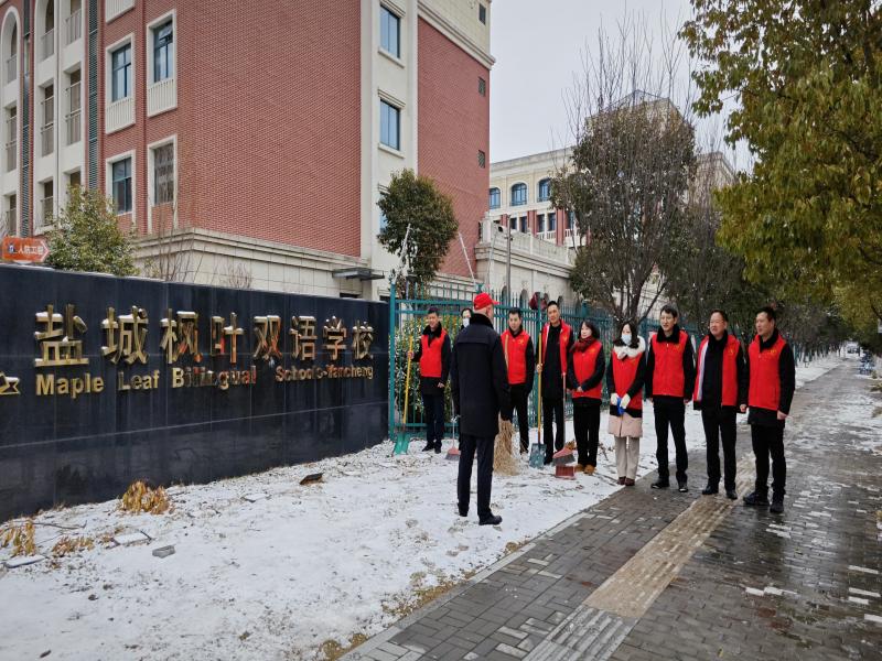修理公司党员干部职工们携带铁锹、扫把等清扫工具,对盐城枫叶双语学校门口道路进行了一场清雪大行动。在扫雪过程中,志愿者们不顾天寒路滑、干劲十足,有的负责铲雪,有的负责清运,分工明确、配合默契。大家身着红色马甲的忙碌身影,在冬天凛冽的寒风中构成了一道亮丽的风景线。