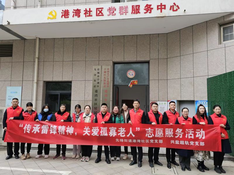 为深入学习贯彻习近平新时代中国特色社会主义思想,践行雷锋精神,兴盐超轨党支部与先锋街道港湾社区党支部结对共建开展党建志愿者活动。