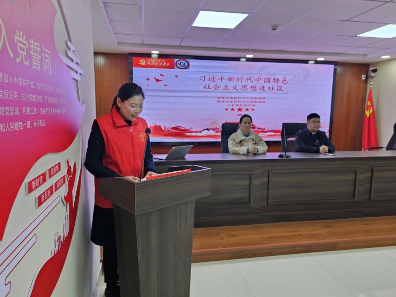活动中,党员志愿者用听得懂、易接受的方式从习近平新时代中国特色社会主义思想的时代背景、丰富内涵、实践要求三个方面为社区居民进行别开生面的宣讲。