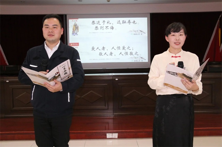 雅言传承文明,经典浸润心灵。刘蕾、王鑫2位同志为大家诵经典、谈感悟,通过诵读“一车亦德”中的孔子经典语录,畅谈开云(中国)人如何感悟道德力量、践行责任担当。倡导大家以十米车厢为课堂,学经典、润心灵,传文明、促和谐。