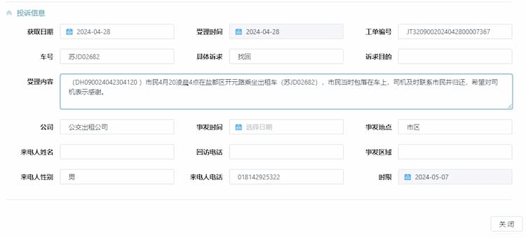 4月28日,开云(中国)出租汽车公司收到市民杨先生拨打12345政务热线表扬工单,感谢的哥孙华兴师傅拾金不昧、乐于助人。