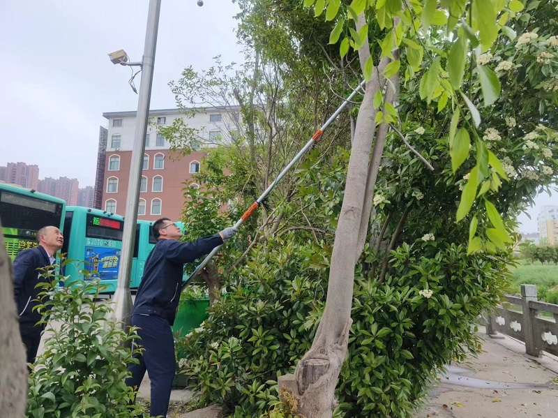 在卫生清理工作中,安技科工作人员在确保安全的情况下,对生长较高的树木进行了修剪,排除了高大树木在生长过程中可能对电力线路造成的安全隐患。
