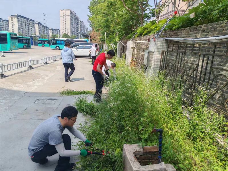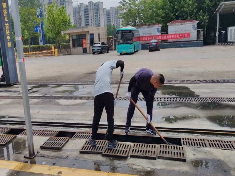 活动开始,十余名党员身着便装,撸起袖子,手持专业工具,分组协作,各司其职,对场站排水系统进行检查与维护。一组人员专注清理排水口与雨水口周边堆积的垃圾、淤泥等障碍物,确保雨水流畅排放,有效避免了路面积水,保障了车辆的通行安全。另一组则投身于场站周围杂草的修剪工作,不仅消除了植被对排水设施的潜在影响,更提升了场站的整体美观度,为市民创造了一个更加舒适、安全的出行环境。