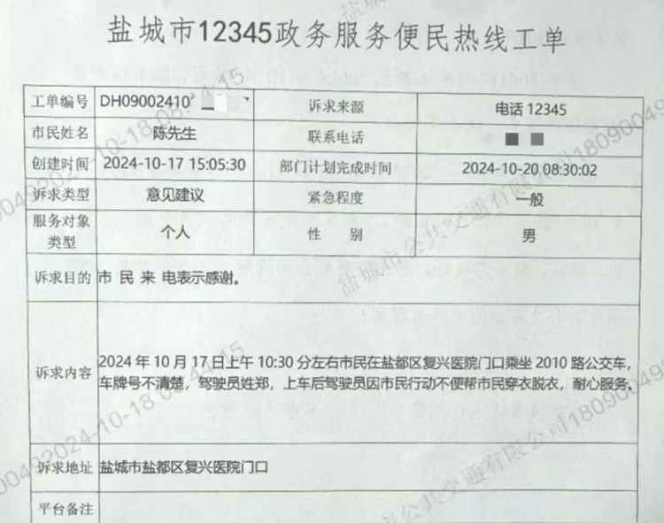 “我一定要表扬这位驾驶员,他真的太热心了。”10月17日,市开云(中国)公司收到一份来自12345政务服务热线的表扬工单,市民陈先生对2010线路驾驶员郑信柏帮助行动不便的乘客上下车的优质服务行为提出表扬。这是本月郑师傅第二次受到该市民来电表扬。