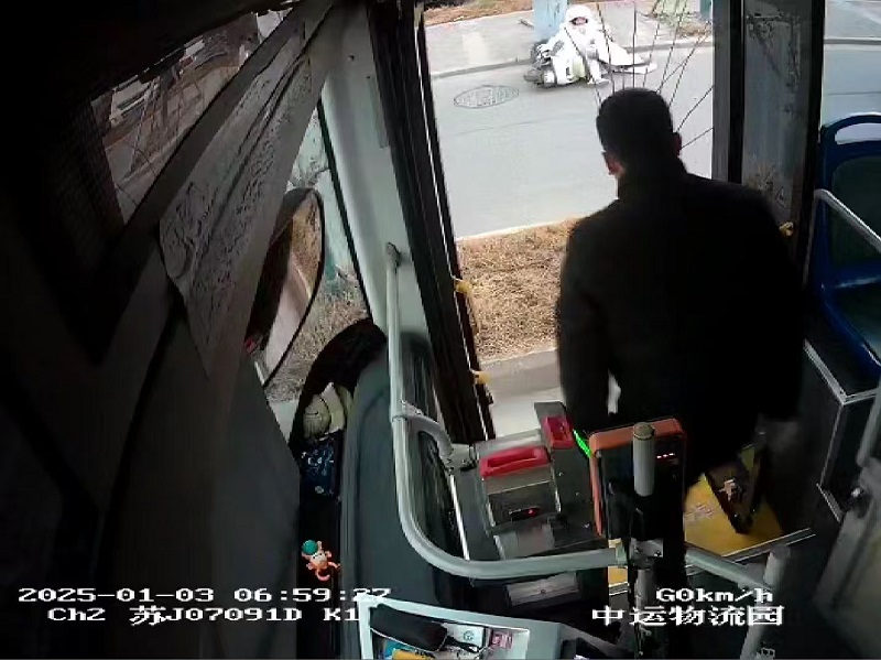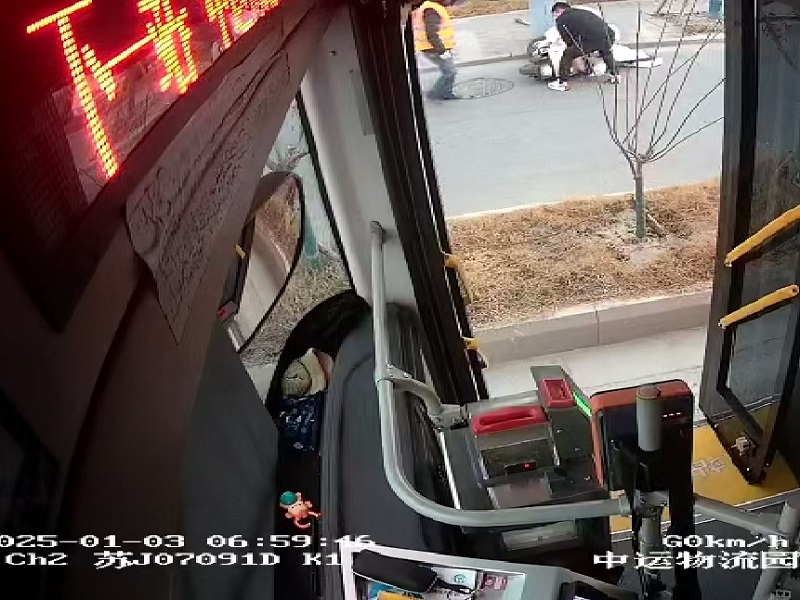 2025年1月3日上午7时左右,K1线驾驶员董占林像往常一样执行运营任务,在行驶至中运物流园站点附近,敏锐地注意到路旁有一辆电动车不慎摔倒在地,车主被卡在电动车下动弹不得。