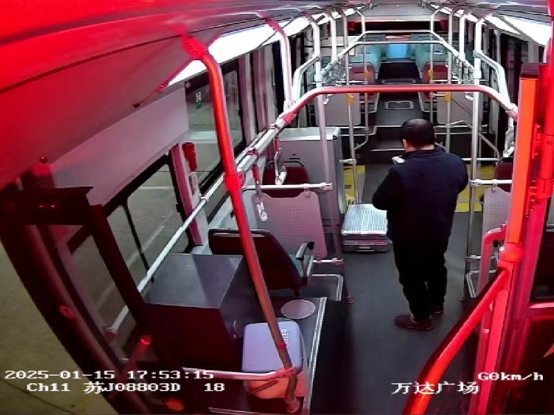 事情发生在1月15日17时53分许,18路苏J08803D号车驾驶员孙军在完成一趟运营任务,像往常一样对车辆进行例行检查时,发现一个银色的行李箱静静地“躺”在车厢里。想到失主此刻一定焦急万分,孙师傅第一时间拍照发至工作群进行失物登记并妥善保管,收班后立即将行李箱完好无损地移交至三分公司后台,等待失主前来认领。