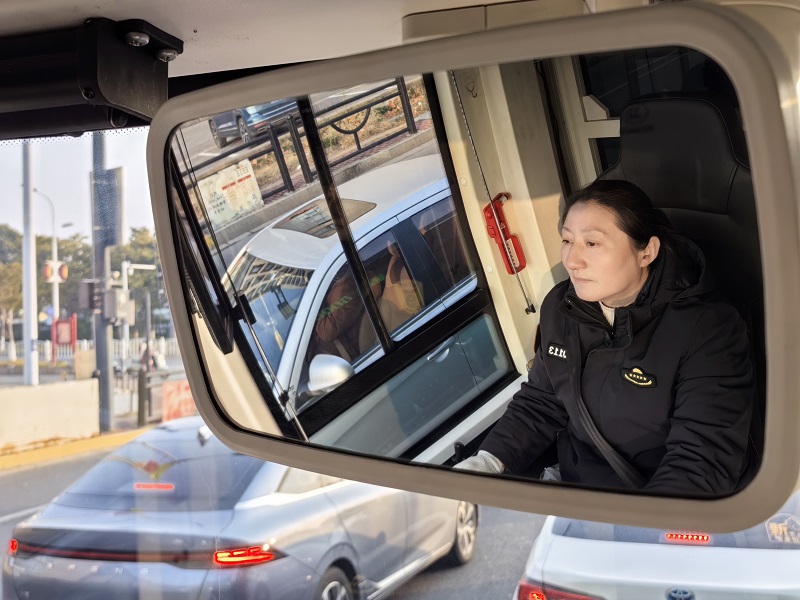 “盐阜人民商场站到了,有下车的乘客,请带好自己的随身物品……”规范进站后,车辆再次平稳启动,透过驾驶室望去,倪敏仔细观察着前方路况,熟练操控着手中的方向盘,穿梭于城市的大街小巷。“我开车有5个坚持,坚持车停稳开门、关好门起步,坚持笑脸相迎、有问必答,坚持平稳起步、均匀前行,坚持遵章守法、文明行车,坚持不断学习、提升自己。”在天山路建军路口等候红绿灯时,她笑着说。