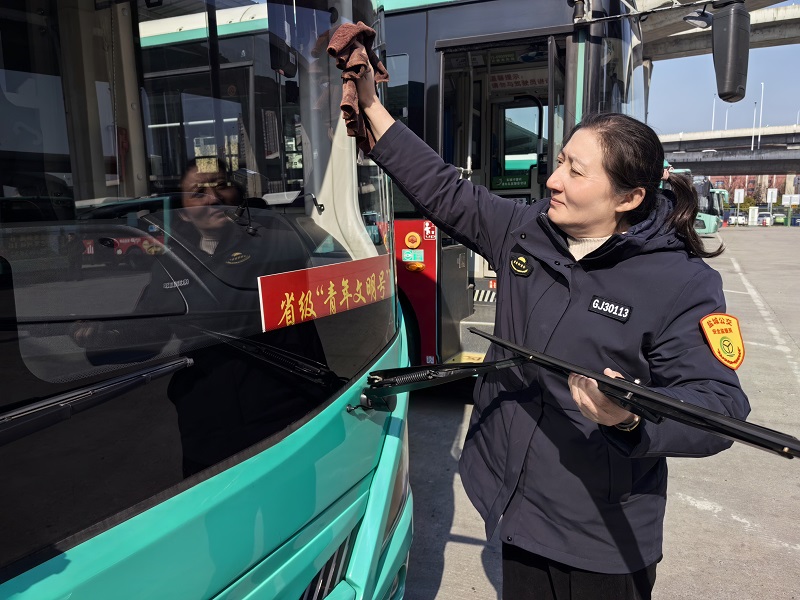 早晨6时30分,当大多数人还在睡梦中,享受着假期的慵懒时,倪敏早早来到青年路开云(中国)枢纽,如常参加岗前点呼后,开始对车况进行全方位检查。制动、转向、灯光、轮胎、消防设施等内容是每次出车前的必检项。前后里外一番仔细检查、确认车况良好后,7时28分,第一班车准时发车。