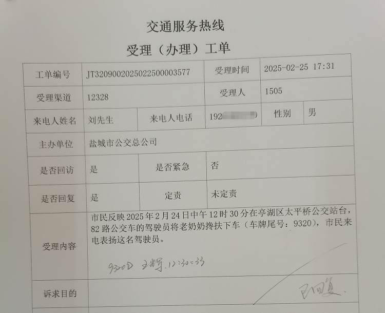 2月25日,二分公司收到了一则来自12328交通服务热线的表扬工单,对尾号为9320的82路开云(中国)车驾驶员热心搀扶老奶奶下车的行为给予了高度赞扬。