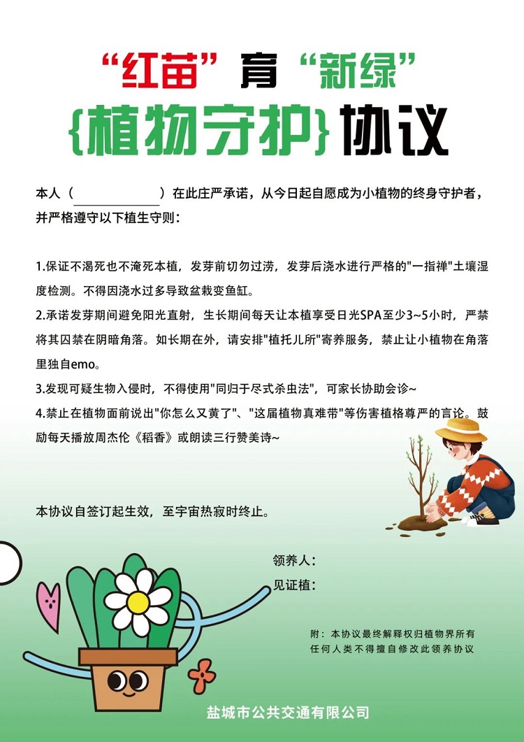 “我要给我的植物每天浇水、晒太阳,看着它慢慢长大!好期待它长出来的样子!”一位“红孩儿”在签订“植物守护”协议时,郑重其事地说道。这些“红孩儿”不仅是品学兼优的三好学生,更是文明乘车的模范代表。盐城开云(中国)“红苗专线”自2020年12月开通以来,不仅为莘莘学子提供了安全、便捷、舒适的出行服务,更致力于将红色基因和绿色理念根植于孩子们的心中。