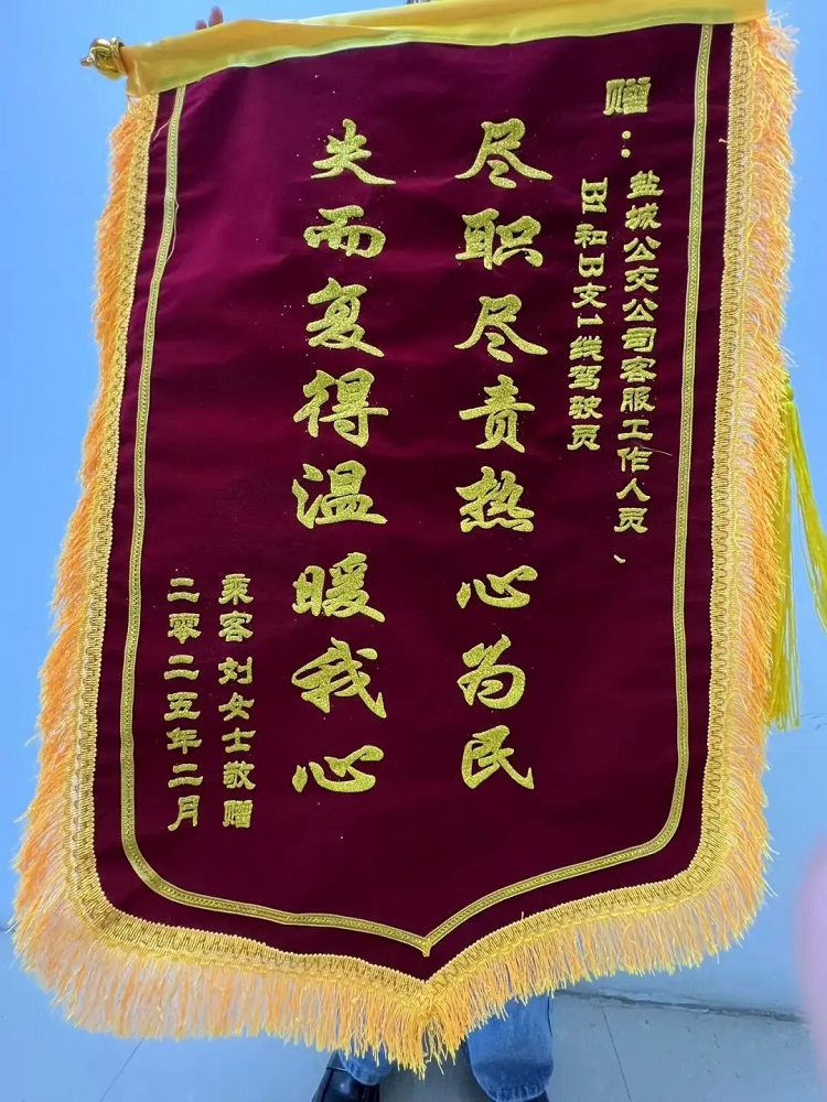 此前,市民刘女士将一面印有“尽职尽责热心为民,失而复得温暖我心”的锦旗送到一分公司后台,感谢B1线、B支1线驾驶员与后台工作人员的“超速度”帮助。原来,刘女士在一次乘车时不慎将背包遗落在车上,后台调度员通过智能系统锁定车辆,两个线路驾驶员接力排查,仅用30分钟便在车厢角落找到失物。