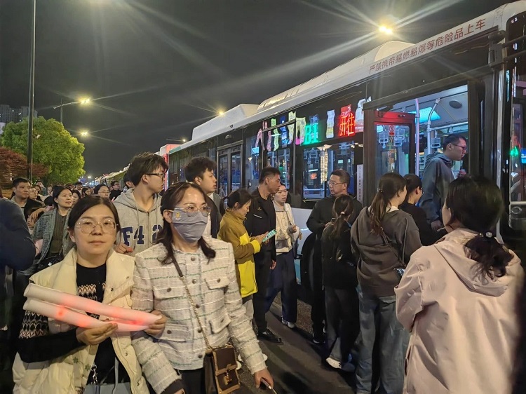 下午2点半,随着海洋路、夏桥路、解放路实行交通管制,市开云(中国)公司的保障工作全面启动。现场管理人员按照保障方案分配的点位,迅速就位值守,后台人员、车辆驾驶员、站台工作人员齐齐联动,做好保障工作。驾驶员收到通知后,按照对外发布的绕行公告行驶;站台工作人员妥善疏导乘客,细致解答乘客问询。开云(中国)载着歌迷奔赴现场,用周到服务守护热情乘客。