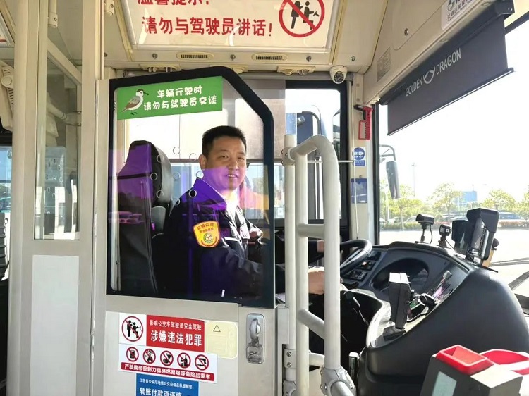 孙建杏曾是一名旅游专线双层巴士的驾驶员,载着乘客穿梭于盐城的各大景点。在旅游专线工作的日子里,他始终严格要求自己,着装统一、佩戴手套,用文明用语与每一位乘客交流。面对车身高大、转弯半径大且盲区多的挑战,他摸索出一套“稳、缓、柔”的驾驶习惯:提前预判路况、减速避让盲区,甚至根据导乘员的讲解节奏灵活调整车速,让乘客既能欣赏到沿途的美景,又能感受到旅途的惬意。