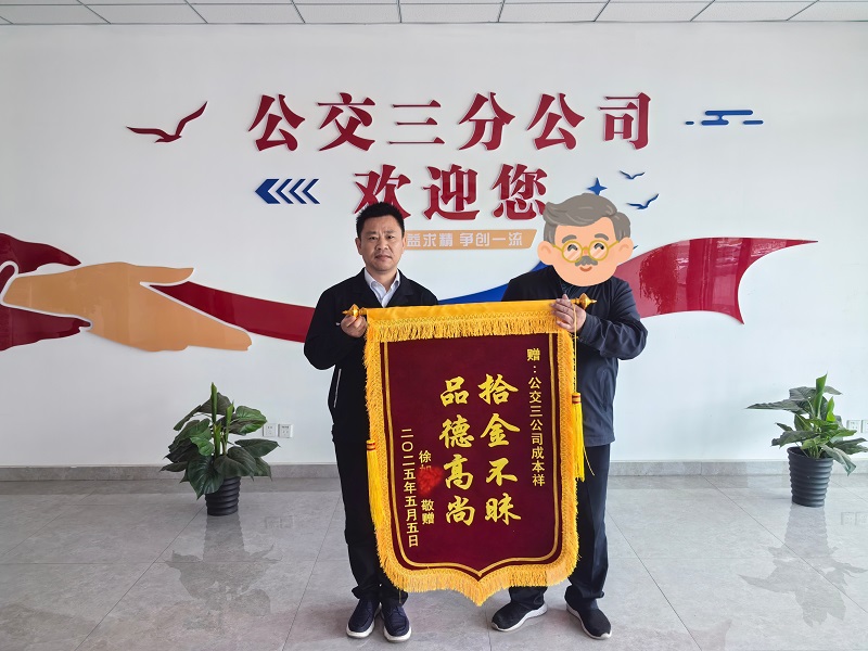 13时29分许,徐老先生匆匆赶至高铁站西广场,在核对身份信息后,顺利取回了遗失的挎包。“真是太感谢您了!钱财丢了倒是小事,要是证件丢了,可就麻烦了……”时隔两日,他又特意定制了一面锦旗送至三分公司,以表达感激之情,这便有了文章开头的一幕。