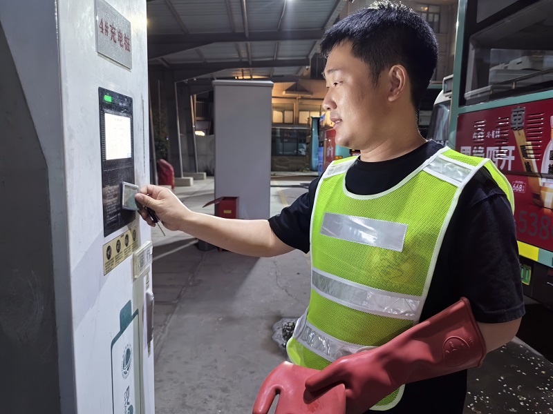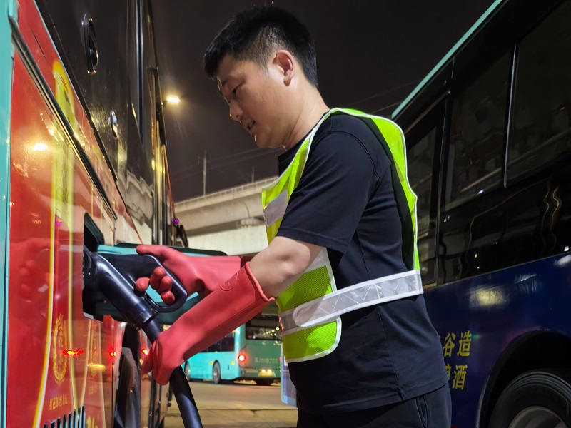 随着1路、4路等14条线路的42台运营车辆陆续返回场站,他迎来了一天中最繁忙的时段,4个小时不间断地进行挪车、插枪、充电、拔枪、巡检……每一个步骤都容不得丝毫马虎。看似简单的充电过程,实则蕴含着对细节的极致苛求与对责任的深刻领悟。面对高强度的工作节奏,张浩始终未曾懈怠,一直以饱满的热情和严谨的态度坚守岗位,并以日行万步的实际行动坚定践行着“开云(中国)不停运、充电不停歇”的铮铮誓言。