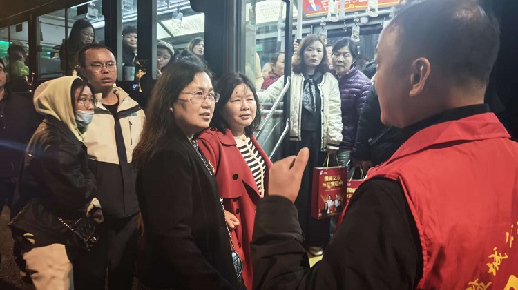 面对散场时的人潮,志愿者们始终面带微笑,主动服务。“您好,请问需要帮助吗?”“您要前往哪个区域?”他们穿梭在人群中,不仅解答线路咨询,指引外地游客,更主动帮扶有需要的乘客,用一次次及时的援手和一句句暖心的问候,驱散了深夜的寒意,将10米车厢变成了传递城市温情的港湾。