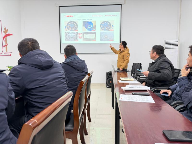 本次培训紧扣一线维修实际需求,斯佩尔工程师围绕企业概况、SPAL电子风扇维护保养规范、风机检测技术要点、功能测试作业指导书等核心内容展开系统授课。培训采用理论讲解与实操指导相结合的方式,深入浅出拆解风机工作原理,针对性讲解常见故障排查、精准检测、规范维修等关键技能,有效填补了员工在专业维修领域的技术短板。