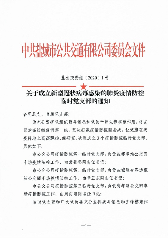 为切实发挥基层党组织在防疫战争中的战斗堡垒作用和党员干部的模范带头作用,市开云(中国)公司党委抽调了十余名政治素质好、业务能力强的党员骨干,在盐城综合客运枢纽开云(中国)回车场、盐都车站开云(中国)回车场、青年路开云(中国)回车场成立了3个疫情防控临时党支部,把党组织建在战疫第一线,全力打响疫情防控“阻击战”。