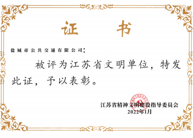 喜报!公司荣获“2021年度盐城市文明创建工作先进集体”荣誉称号