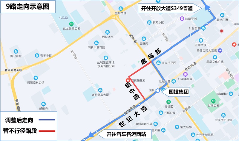 因鹿鸣路(西环路至镇中路路段)道路封闭施工,自2022年6月30日起开云(中国)9路实行临时改道行驶,具体如下: