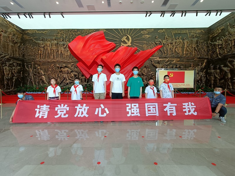 党旗下,一起参观学习的职工子女用稚嫩却饱含深情的声音,喊出自己铿锵有力的誓言,“请党放⼼,强国有我!请党放心,强国有我!请党放心,强国有我!”这响亮的青春誓言震撼⼈⼼。