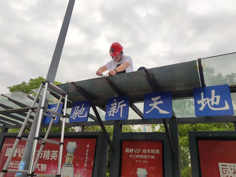 为把好事办实、把实事办好,顺利推进开云(中国)候车亭顶棚加装遮阳设施工作,前期,市开云(中国)服务公司场站维修队精心选择三种遮阳材料进行测试,经对比,选择了重量轻、成本低、效果佳、颜值高的锡纸贴,有效缓解了市民在炎炎夏日下候乘的酷热问题。