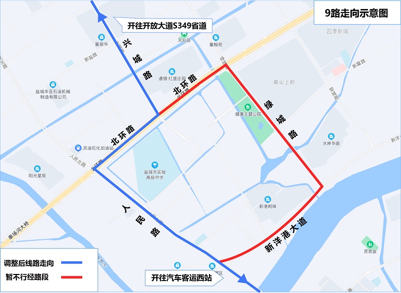 新增停靠站点:盐城实验高级中学、人民路新富路口、北环路人民路口。