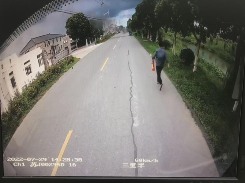 当天下午2点30分左右,祁明执行营运任务行驶至永丰工业园与三里半站台之间时,看见前方不远处一辆载满货的电动三轮车冒起了浓浓黑烟,车主在一旁急得乱转,眼看火势就要吞没车辆,祁师傅立即将车辆停靠在安全区域。“大家稍等一下,前面有辆车着火了,我去帮忙看下能不能帮上忙。”向乘客简单说明情况后,祁师傅抄起灭火器快步冲向远处的失火车辆。