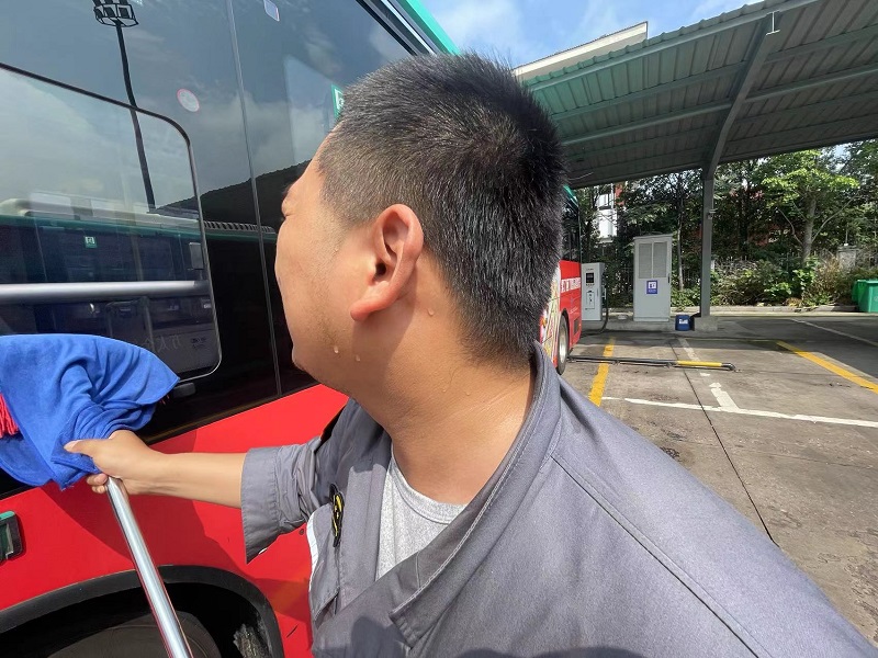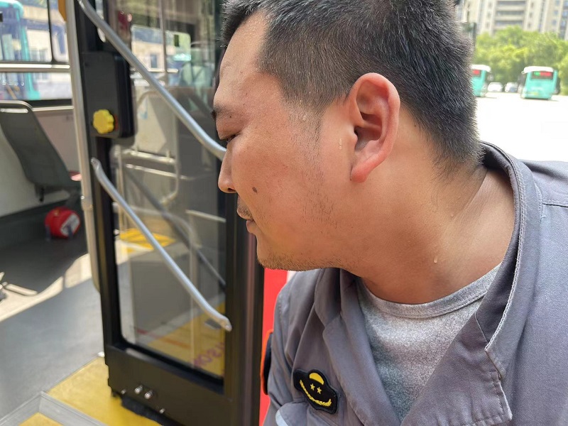 8月2日上午10点,在城南开云(中国)回车场,二分公司82路车驾驶员吕捷俊正准备发车。每天上班,他总是提前半小时到岗,认真打扫车辆卫生,仔细检查灯光转向、轮胎等部件是否正常,确保开云(中国)车辆在夏季高温下保持良好的技术状态。烈日炙烤下,车厢温度非常高,吕师傅走进车厢,提前打开空调,顶着满头大汗,开始清扫车厢,抹窗、拖地、倒垃圾……车内每个角落都仔细清洁一遍,让乘客有一个舒适凉爽的乘车环境。“这些提前准备工作,我们每天都坚持做,这样乘客一坐上车,就能感觉很凉快很舒适。”