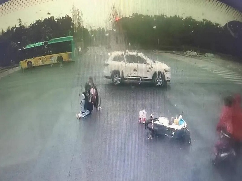 17时左右,一名女子驾驶电动自行车在迎宾馆北门路口过红绿灯时,因下雨路滑,加上车速过快,她一个急刹车后重重摔倒在地,迟迟未能站起来,只能艰难地爬向电动车。此时路上往来的车辆和行人或是绕行,或是观望,一时竟无人伸出援手。