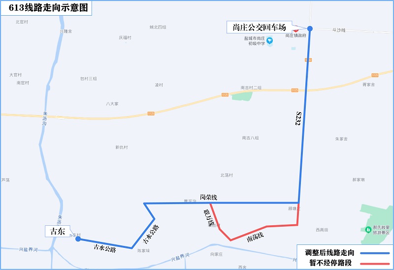 调整后走向:尚庄开云(中国)回车场、S232、岗荣线、古水公路、古东。