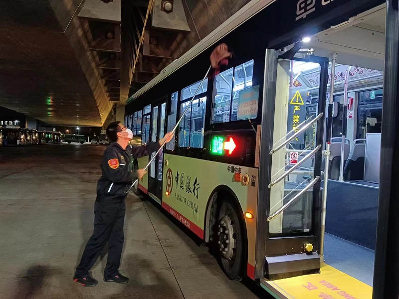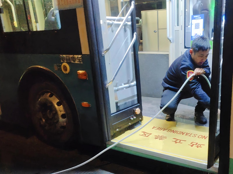 恰逢雨季,车辆卫生保持不易。为给乘客提供舒适的乘车环境,22日晚收班后,在线路班长的带领督促下,各线路驾驶员连夜清洁车厢,仔细擦拭,不放过任何一个卫生死角,确保车厢时刻保持干净整洁、温馨舒适。