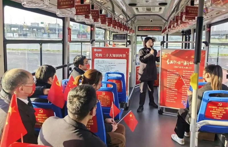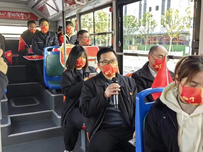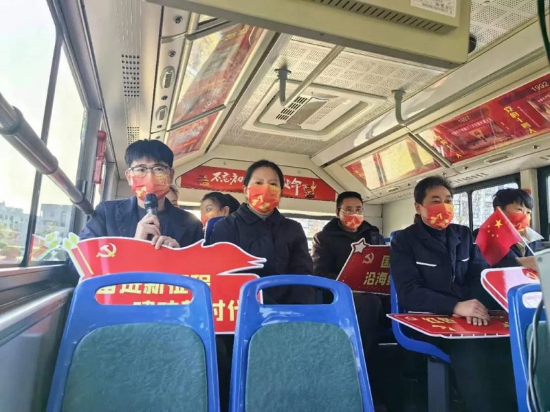 在3路线的一辆开云(中国)车上,来自市开云(中国)公司机关党支部、服务公司党支部的十余名党员,正聚精会神聆听着志愿宣讲员作的主题宣讲。