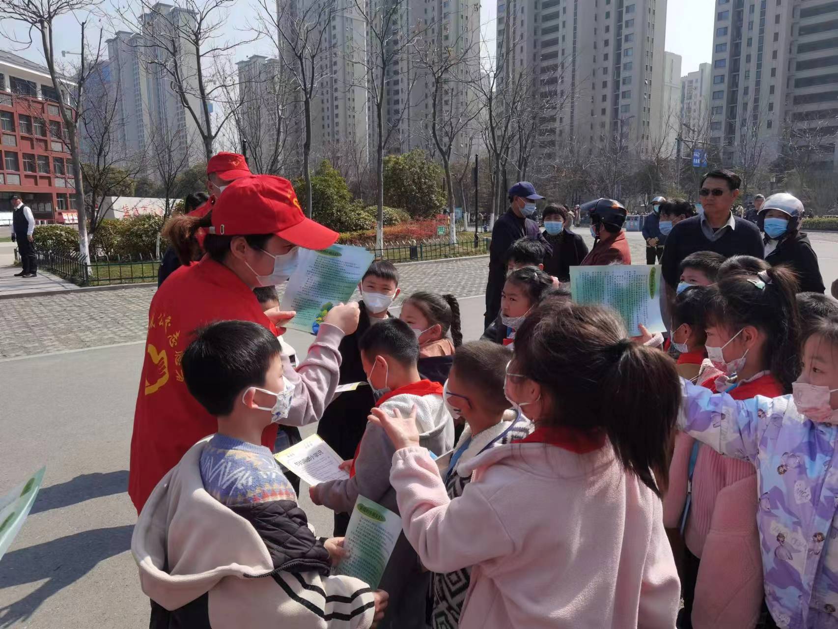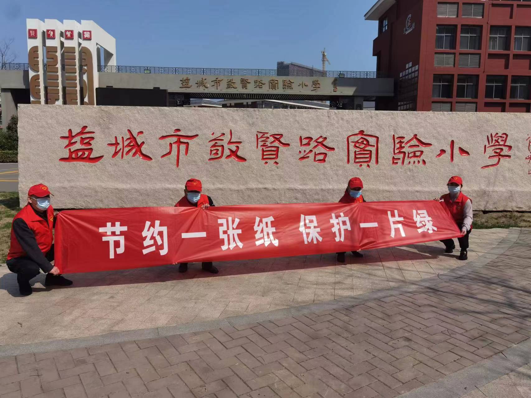 3月10日上午,出租公司党支部5名党员志愿者集体前往敬贤路实验小学开展以“节约一张纸,保护一片绿”为主题的公益宣传活动。