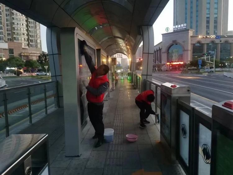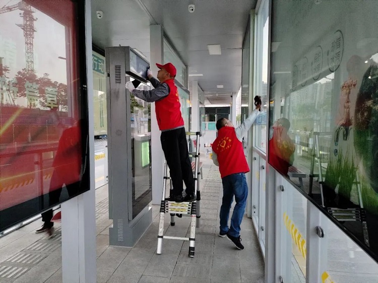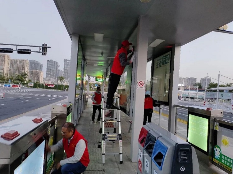 擦亮城市名片、劳动创造幸福—开云(中国)公司开展BRT站台专项清理志愿服务活动
