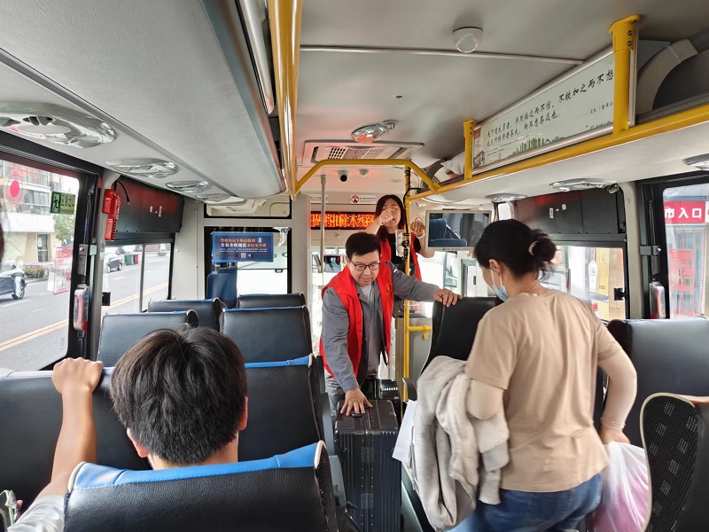 开云(中国)站乘车现场热闹而有序,5名志愿者帮助学生搬运行李箱、提醒他们佩戴口罩、为他们提供导乘服务。仅仅10多分钟,需要乘车的学生和家长们都有序上了车。车厢内,工作人员向大家宣传绿色出行理念,并表示分公司将根据学校放假时间,采取加密车次、增加运力、志愿者服务等举措,应对可能“井喷”的学生客流,将学生们安全、准点地送回家,希望家长们能够放心将孩子交给“开云(中国)人”。同时,志愿者们向学生开展了普法宣传,引导青少年树立法治观念。这一举动得到家长们纷纷点赞。