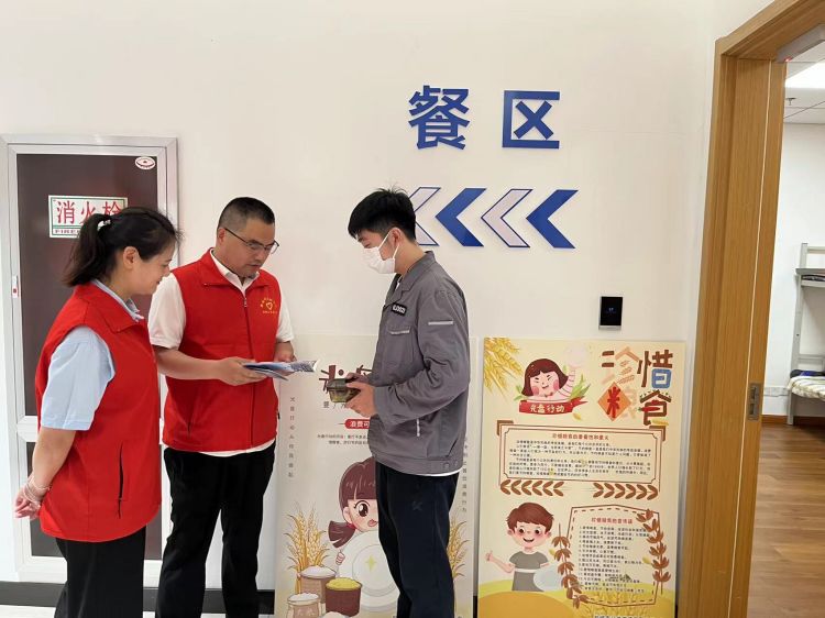 在本次团日活动中,部分团员代表纷纷化身志愿者,在职工驿站向小憩的青年职工发放《城市节约用水》等宣传册,倡导大家在日常生活工作中,做到拧紧水龙头、随手关灯,聚会时适量点餐,争做光盘“小达人”。