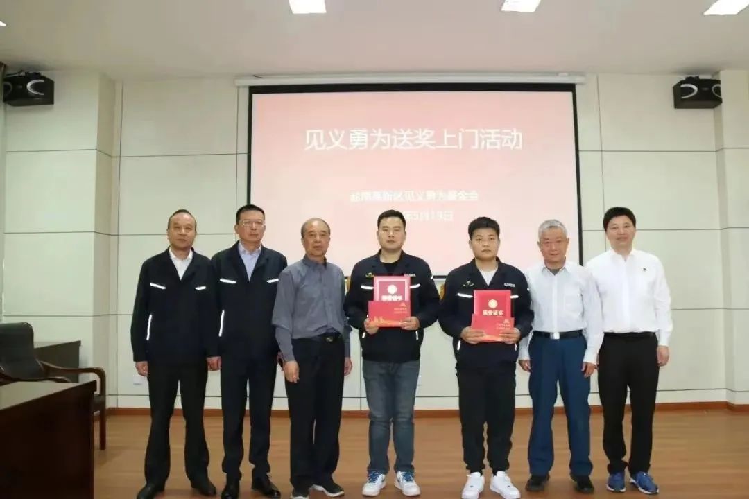 今年5月9日上午11时36分左右,金浦在执行营运工作时,发现一辆小货车突燃大火,他果断采取措施灭火,在同事王鑫的帮助下,在用完四只灭火器后,终于将火扑灭,避免造成更大的事故损失。金浦师傅的救火行为也被公安部门认定为见义勇为行为,盐南高新区见义勇为基金会为金浦师傅送上了1000元慰问金。