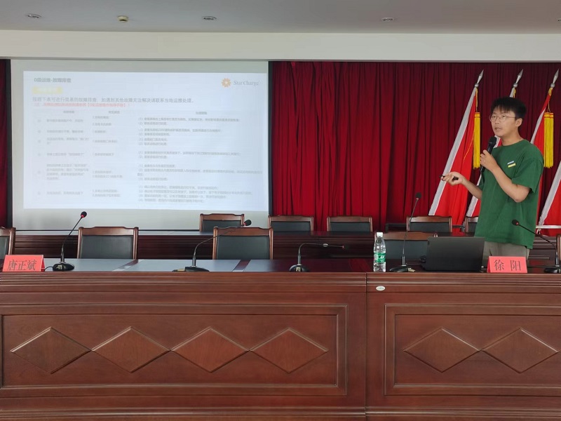 万帮星星充电科技有限公司和盐城交投特来电的两位工程师分别作理论培训,他们围绕充电桩基本结构、充电操作流程、常规故障排查、场站安全注意事项、应急预案措施、安全巡检等6个方面内容进行授课,通俗易懂的语言和深入浅出的讲解,极大提升了培训的效果。会上,大家还观看了触电急救教学视频,学习了解触电伤害现场应急处置方法和人体心肺复苏基本操作等安全知识,通过培训,大家都能掌握基础的触电急救、现场处置等技能。