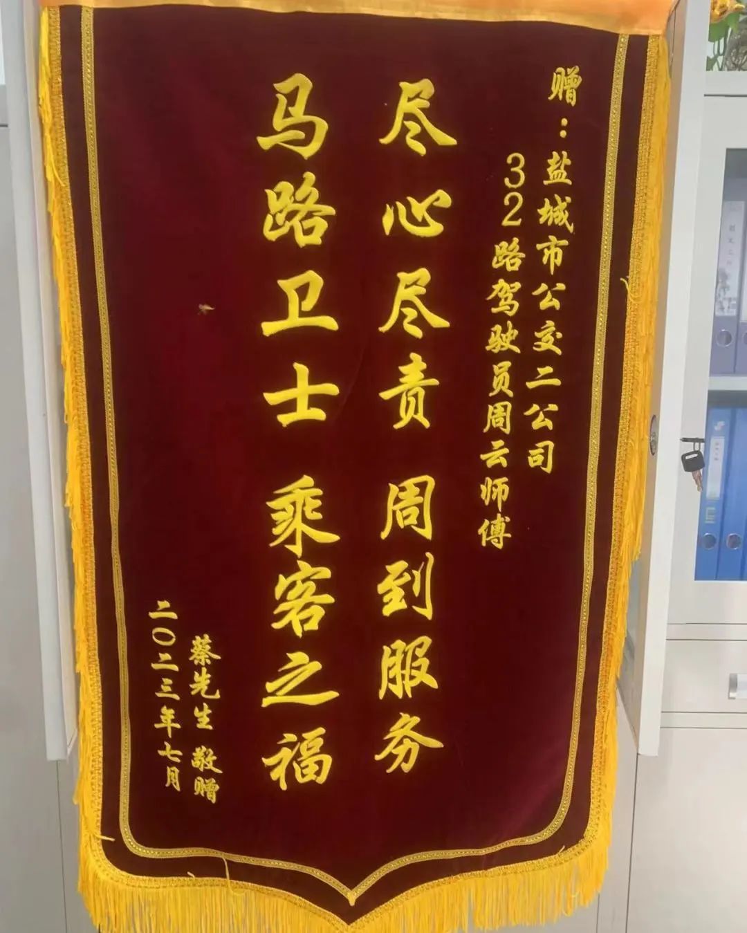 “由衷地感谢盐城开云(中国)人的奉献精神,我特地送来感谢信和锦旗,以此表达对这位女土的感激之情。”日前,盐城开云(中国)二分公司收到市民蔡先生送来的一面锦旗和一封感谢信,锦旗上面写着“尽心尽职 周到服务 马路卫士 乘客之福”字样,蔡先生在感谢信中表达了他对32路“学雷锋志愿服务示范线”驾驶员周云热心服务的赞誉之情。