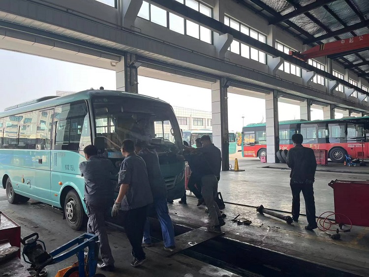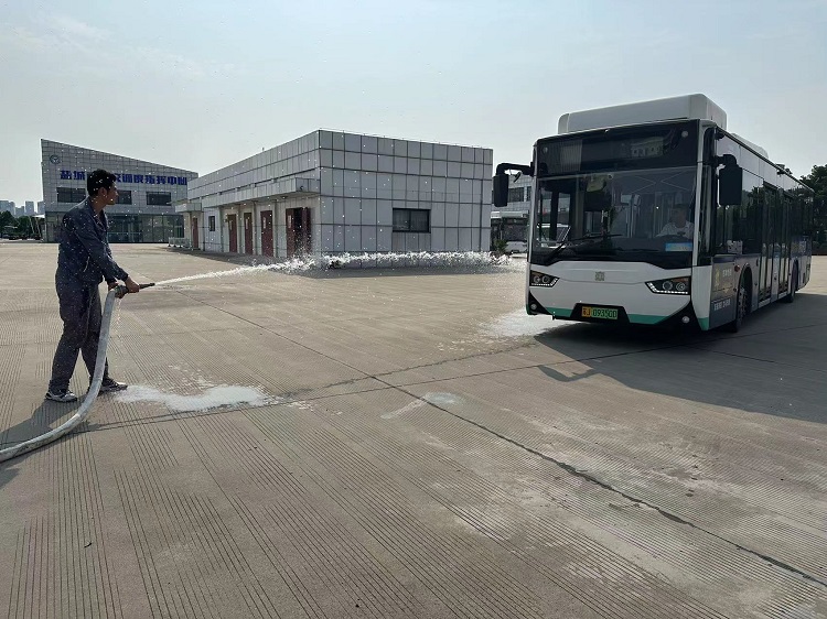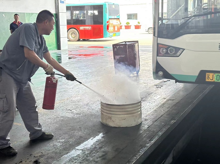 火情发生后,现场负责操作的修理工迅速取来就近的灭火器展开扑救,并大声呼喊现场小修班长协同灭火,同时向公司领导报告情况。公司领导立即赶到现场,指挥驾驶员将车开到空旷、开阔且靠近消防栓的地方,整个演练过程有条不紊。
