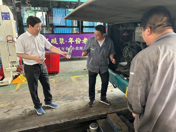 在修理车间里,夏建龙一行与修理工人们一一握手交谈,详细了解他们工作生活以及防暑降温工作落实情况,随后向修理工人们送上防暑降温用品,感谢他们在炎炎夏日里的付出,对他们不畏酷暑、守岗敬业的工作作风表示肯定,叮嘱他们要做好自身防护,注意防暑降温,平稳顺利地度过高“烤”。