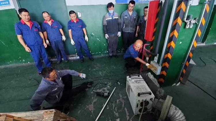 修理公司开展车间触电事故应急演练