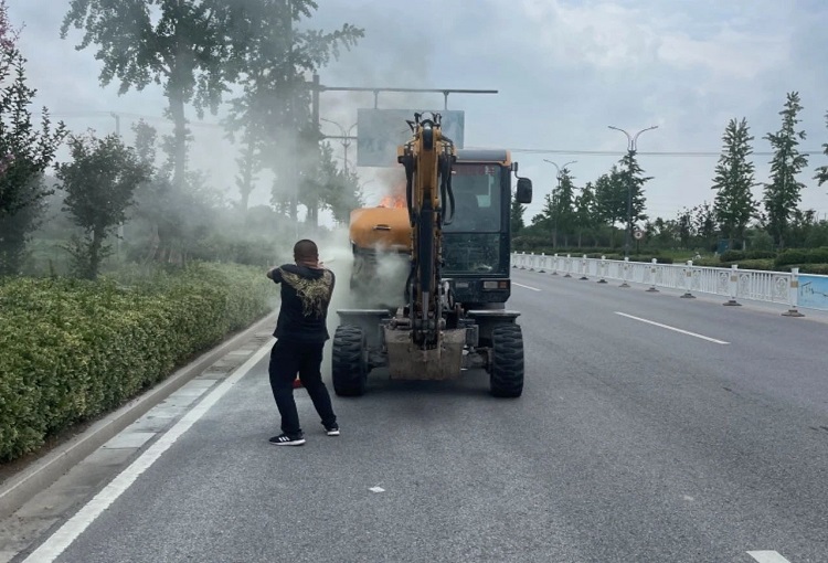 据吴先生介绍,此次失火是因挖掘机电路故障引发的油管破裂造成的。