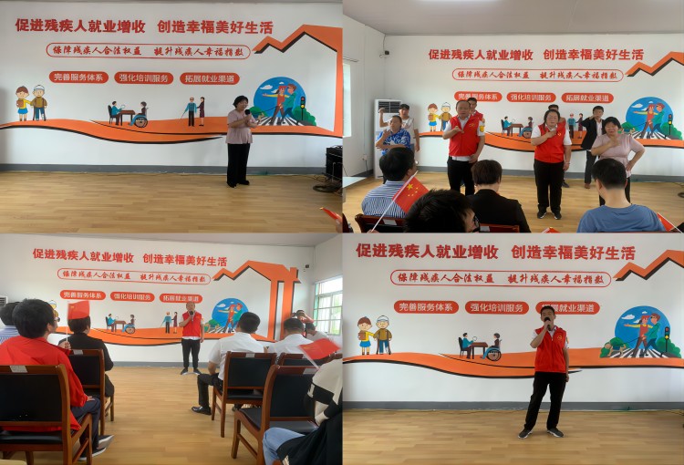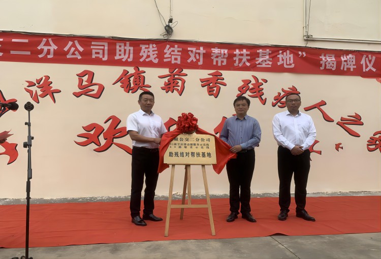 洋马镇政府副镇长崔晓蕾主持揭牌仪式并致辞,二分公司党支部书记朱建军和射阳县残疾人联合会沈建标主任共同为“助残结对帮扶基地”揭牌。现场向残疾人朋友赠送了节日慰问品,并送上节日祝福。