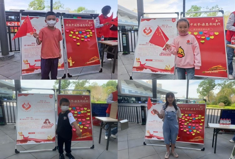 志愿者在咨询服务台上准备了许多制作国旗的材料,邀请往来市民现场制作迷你国旗,并在身上张贴国旗标贴,以此形式为祖国庆生。同时引导市民在祝福墙上写下祝福语,表达对祖国母亲最真挚的祝福以及对自己美好祝愿,现场气氛热烈。